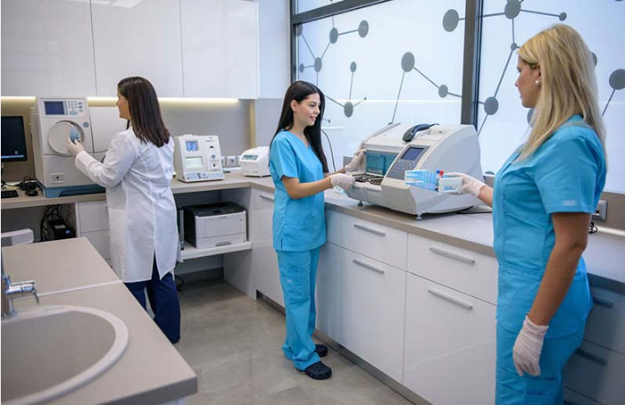 Στο εργαστήριό της διαθέτει τελευταίας τεχνολογίας αναλυτές για